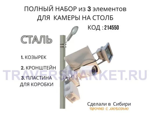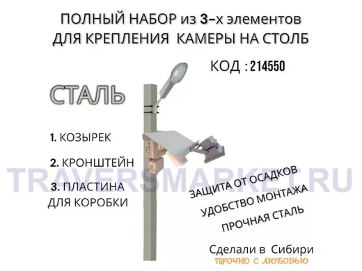 - Кронштейн позволяет быстро зафиксировать камеру и прожектор на столбе, не сверля его.
