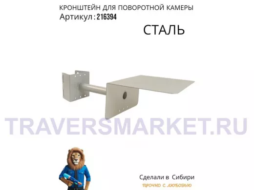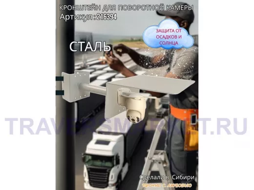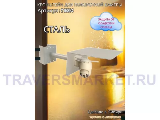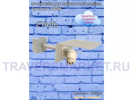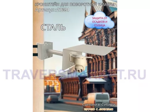 Заказать звонокКронштейн на столб для поворотной камеры с козырьком и вылетом 25 см "HIWOLL-216394" серый, сталь