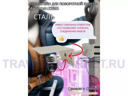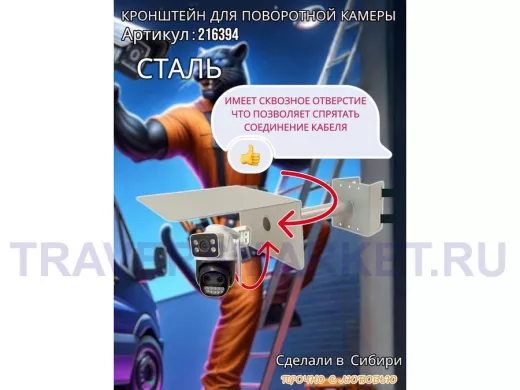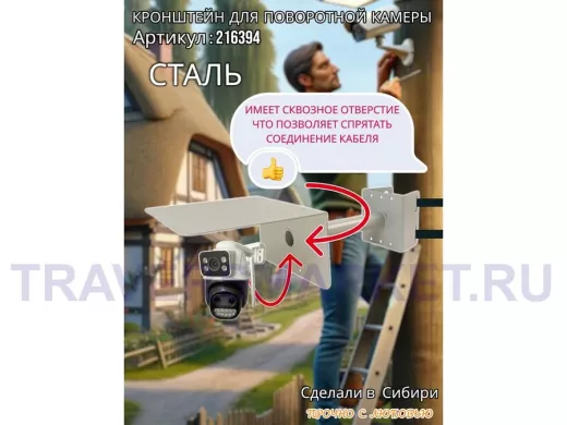 - Стальной кронштейн позволяет вынести камеру от столба на 25 см.