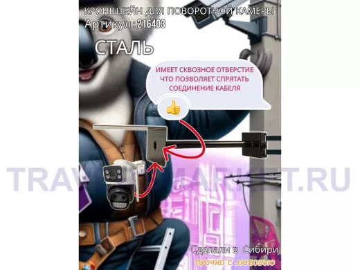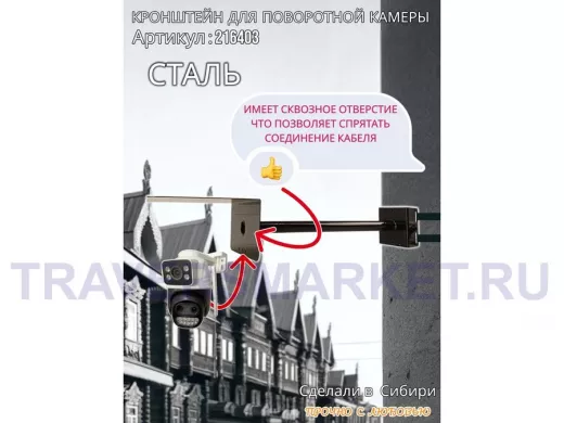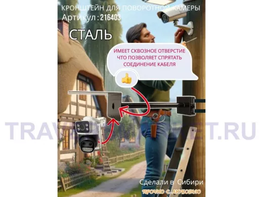 - Стальной кронштейн позволяет вынести камеру от столба на 50 см.