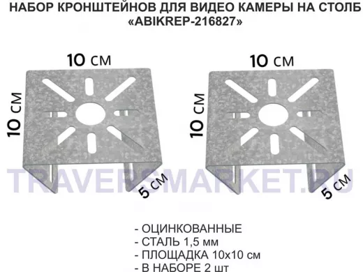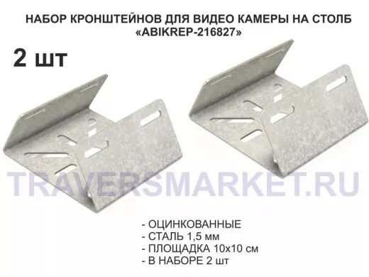 Заказать звонокНабор 2 шт. Кронштейн оцинкованный для камеры на столб "ABIKREP-216827" 100х104мм, сталь,под хомуты