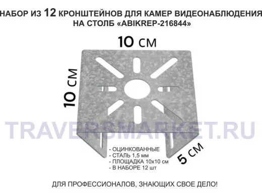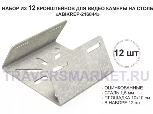 Заказать звонокНабор 12 шт. Кронштейн оцинкованный для камеры на столб "ABIKREP-216844" 100х104мм, сталь,под хомуты