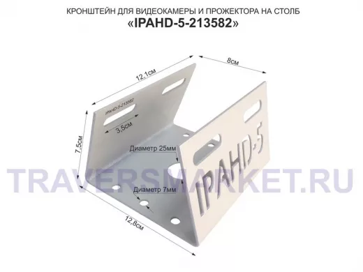 Кронштейн для камеры и прожектора на столб "IPAHD-5-213582" серый под СИП-ленту, хомут, вылет 75мм