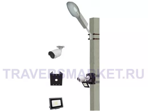 - Кронштейн позволяет быстро зафиксировать камеру и прожектор на столбе, не сверля его.