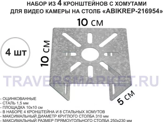 Набор 4шт. Кронштейн оцинкованный для камеры наблюдения с хомутами на столб "ABIKREP-216954"