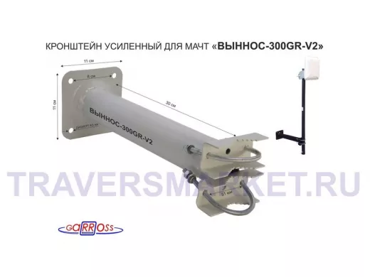 Заказать звонокКронштейн усиленный для мачт, вылет 0,3м "ВЫННОС-300GR-V2-113981" серый с 1отв.25мм для гофры, 51мм