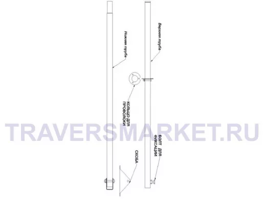 - В комплекте мачты: две трубы диаметром 32мм, подпятник и проволочные растяжки