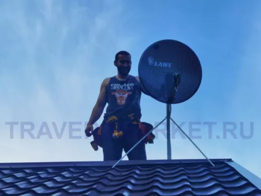 Пример монтажа на одной мачте телевизионной антенны и панельной антенны для беспроводного интернета 3G, 4G