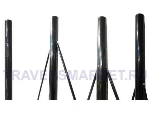 На трубе диаметром 50мм имеются три отверстия, что позволяет грубо регулировать высоту установки труб-растяжек при монтаже
