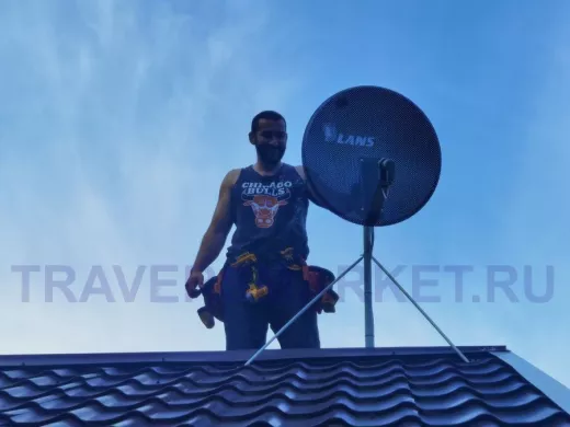Пример монтажа на одной мачте телевизионной антенны и панельной антенны для беспроводного интернета 3G, 4G