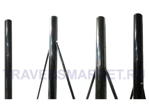 На трубе диаметром 32мм имеются три отверстия, что позволяет грубо регулировать высоту установки труб-растяжек при монтаже