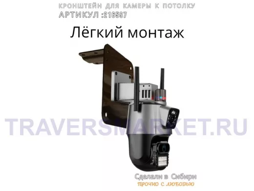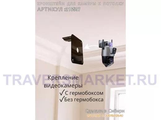 Кронштейн для поворотной камеры к потолку "HIWOLL-216597" черный, сталь