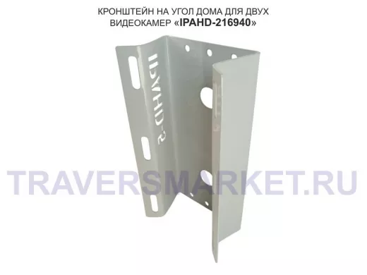 Кронштейн угловой металлический для двух камер видеонаблюдения "IPAHD5-216940". Подходит для большинства типов видеокамер: цилиндрических, купольных или поворотных