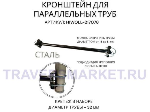 Заказать звонокКронштейн для параллельных труб диаметром от 15 до 51мм длина 75см "HIWOLL-217078" стальной, чёрный