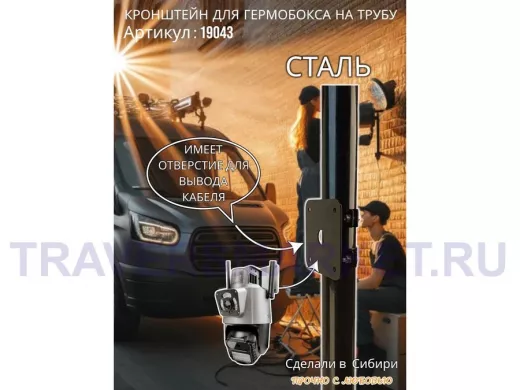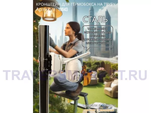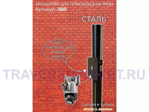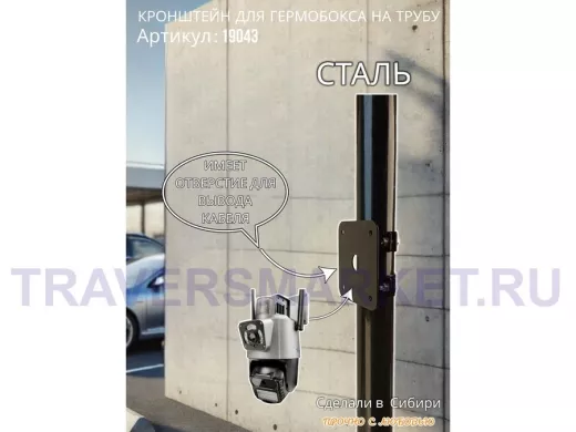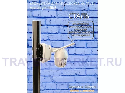 - Кронштейн позволяет быстро зафиксировать гермобокс с видеокамерой на трубу.