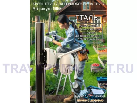 - Универсальный усиленный кронштейн предназначен для крепления гермобоксов,коробок с видеокамерой, дорожных знаков ,электрощитков на трубе диаметром 50мм.