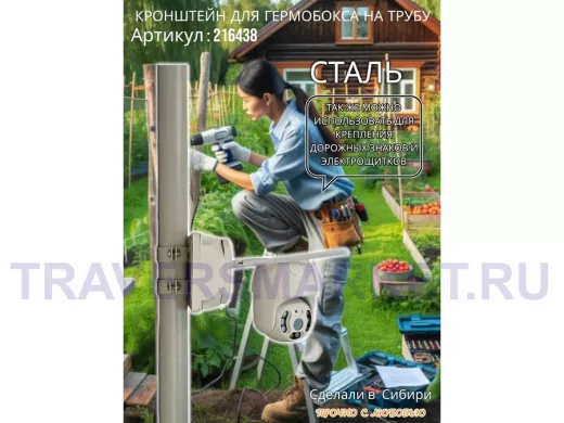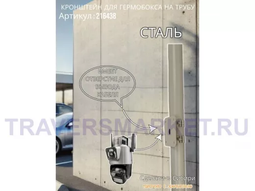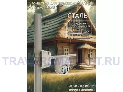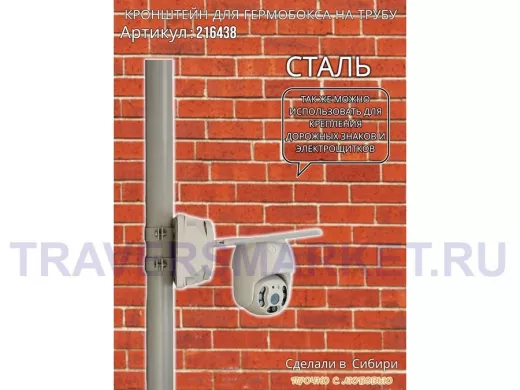- Кронштейн позволяет быстро зафиксировать гермобокс с видеокамерой на трубу.