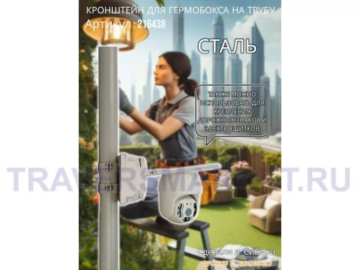 - Универсальный усиленный кронштейн предназначен для крепления гермобоксов,коробок с видеокамерой, дорожных знаков ,электрощитков на трубе диаметром 50мм.