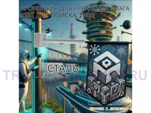 Кронштейн позволяет быстро и прочно зафиксировать флаг или вазон на столбе без его сверления.