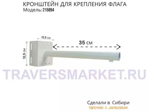 Заказать звонокКронштейн для крепления флага на столб угол 90 градусов "ФЛАГОКРЕП-215894" вылет 35см, сталь, белый