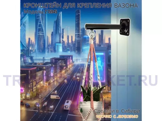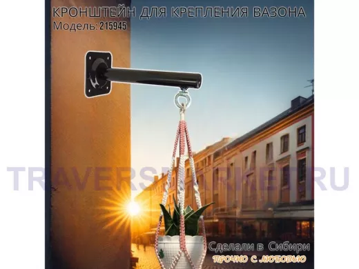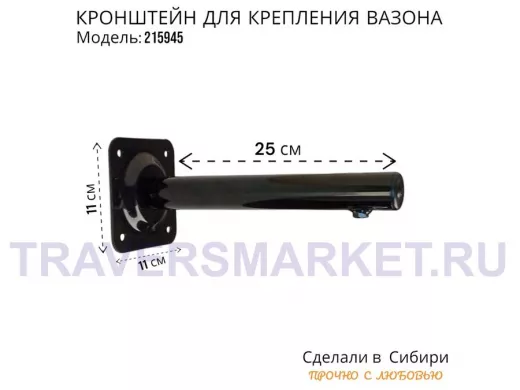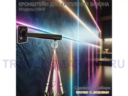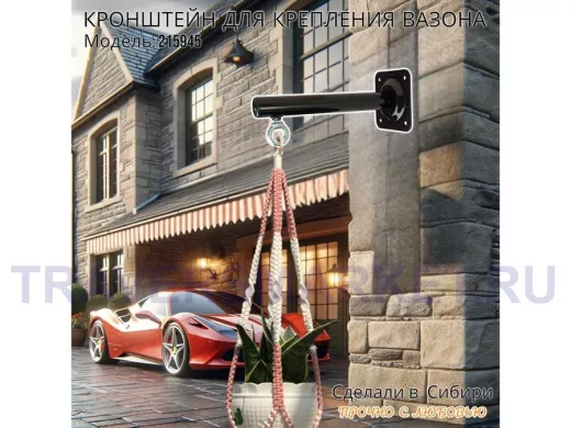 Заказать звонокКронштейн для крепления кашпо, вазона на стене угол 90гр вылет 25см "ПРОСЕКИНО-215945" сталь, черный
