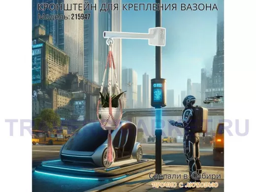 Заказать звонокКронштейн для крепления кашпо на столб угол 90 градусов "ПРОСЕКИНО-215947" вылет 35см, сталь, белый