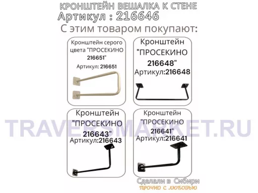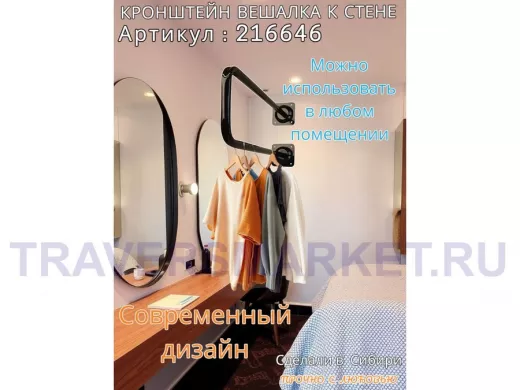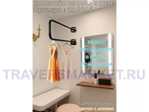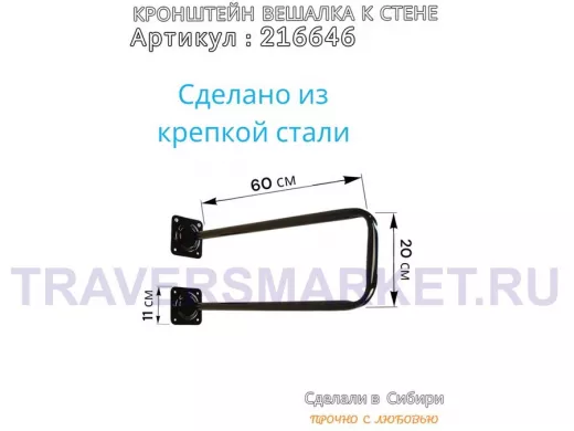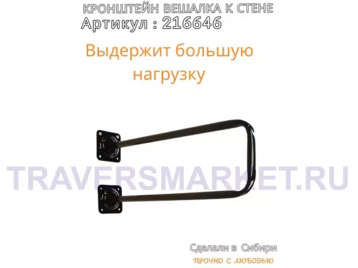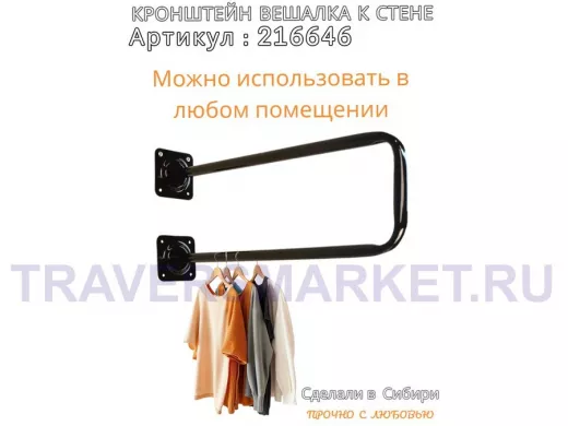 Заказать звонокКронштейн для плечиков с одеждой, вешалка к стене 60 х 20 см "ПРОСЕКИНО 216646" чёрный, 22мм