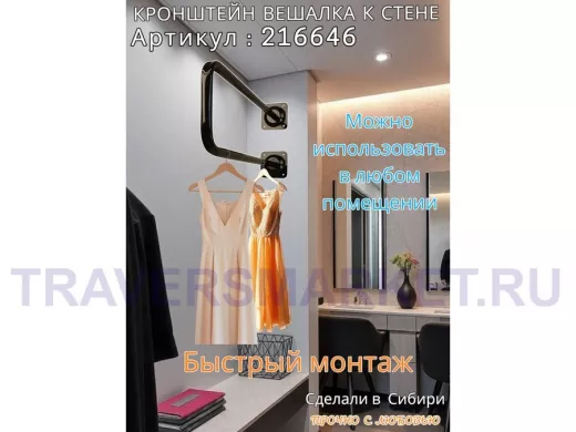 Кронштейн для плечиков с одеждой крепится в углу гардеробной или комнаты, также может крепиться к потолку и стене.