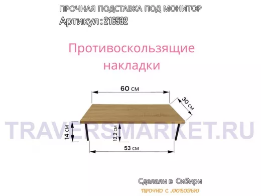 Заказать звонокПодставка под монитор на стол 60х30см высота 14см "ABBIKUS-216532" дуб сонома, черные ножки