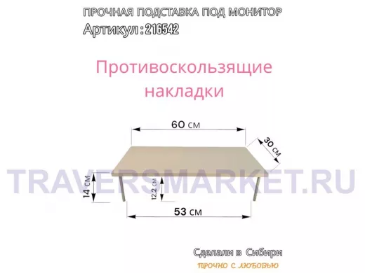 Заказать звонокПодставка под монитор на стол 60х30см высота 14см "ABBIKUS-216542" сосна выбеленная, серые ножки
