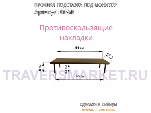 Заказать звонокПодставка под монитор на стол 54х17,5см высота 11см, венге "ABBIKUS-216546" черные ножки