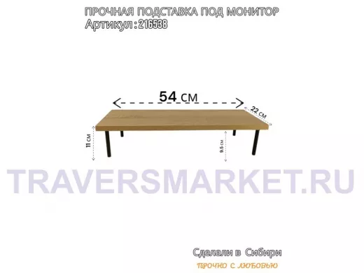 Заказать звонокПодставка под монитор на стол 54х22см высота 11см, дуб сонома "ABBIKUS-216538" черные ножки