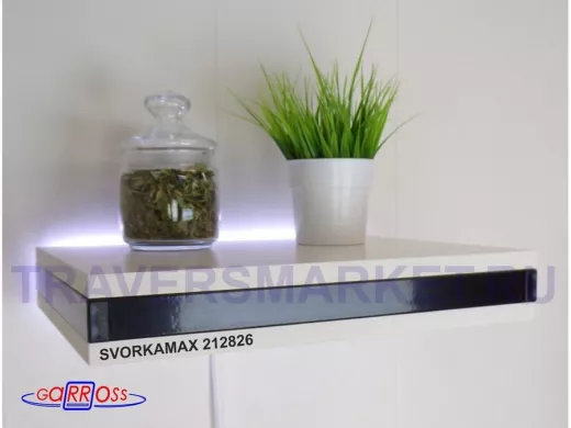 - Полка скрытого крепления укомплектована светодиодной подсветкой с выключателем на шнуре и блоком питания