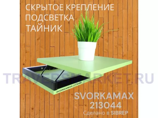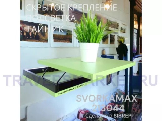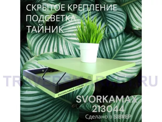 Заказать звонокПарящая полка скрытого крепления с подсветкой и тайником, черный "SVORKAMAX 213044" 30х40, салатовый