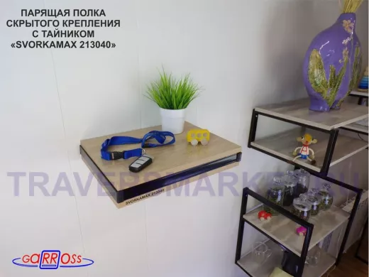 Заказать звонокПарящая полка скрытого крепления с тайником, черный "SVORKAMAX 213040" 30х40 см, дуб сонома