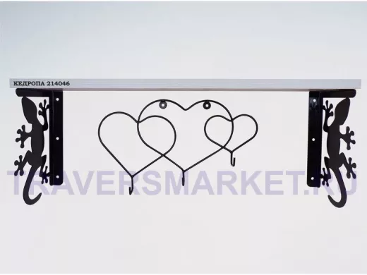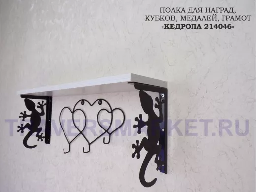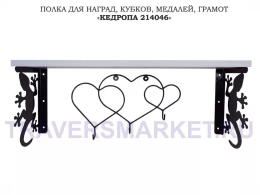 Заказать звонокПолка для наград, кубков, медалей, грамот "КЕДРОПА-214046 гекон"размер 15х60х24 см, сосна с сердцами
