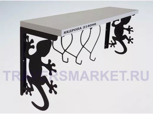 Интересная полка с профилем гекона и тремя крючками, позволит разнообразить интерьер, сделать его непохожим, уникальным, запоминающимся.