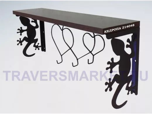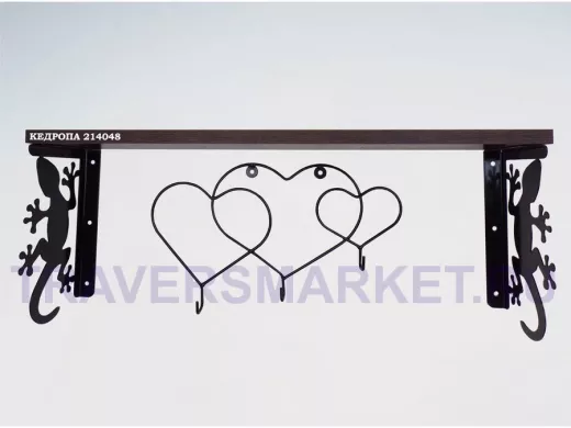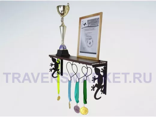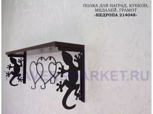 Заказать звонокПолка для наград, кубков, медалей, грамот "КЕДРОПА-214048 гекон"размер 15х60х24 см, венге с сердцами