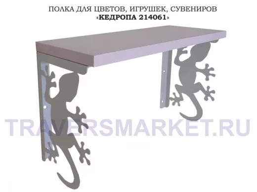 Заказать звонокПолка для цветов, игрушек,сувениров "КЕДРОПА-214061 гекон" размер 15х40х24 см, серый, лаванда