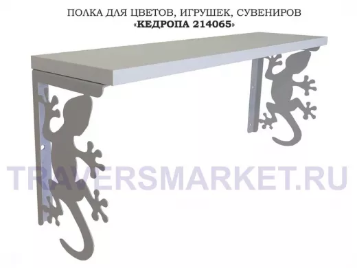 Заказать звонокПолка для цветов, игрушек,сувениров "КЕДРОПА-214065 гекон" размер 15х60х24 см, серый, белый шагрань