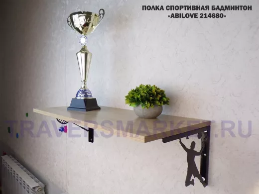 Заказать звонокПолка спортивная "БАДМИНТОН ABILOVE-214680" для кубков, наград, медальница, дуб сонома, 30х60см