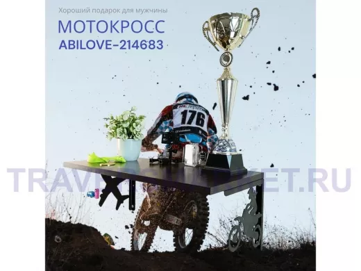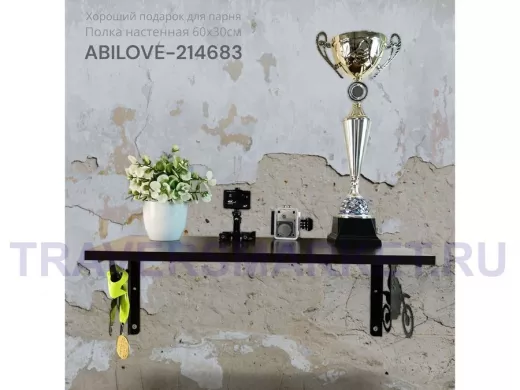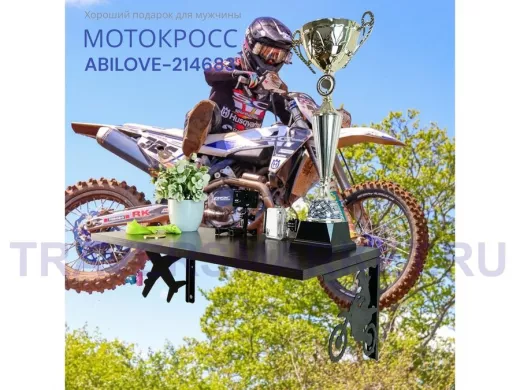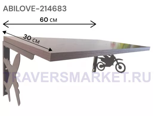 Полка для парней "МОТОКРОСС ABILOVE-214683" для кубков и аксессуаров, венге, 30х60см