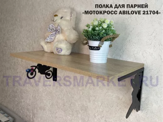 Заказать звонокПолка для парней "МОТОКРОСС-214704" для кубков и аксессуаров, дуб сонома, 30х60см