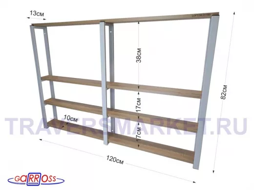 Заказать звонокПолка для вина и бокалов, высота 82см, 4 уровня, размер полки 10х120см, серая "LOFTOM 211585" дуб