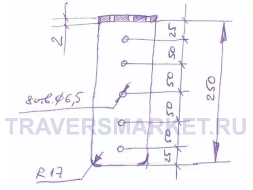 Заказать звонок"ПАПРИКА-250-L1-BK" кронштейн чёрный для скрытого крепления полок,80х250х2мм, 9отв.6,5мм,без полки