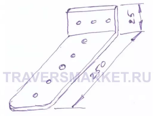 "ПАПРИКА-250-L1-BK" кронштейн чёрный для скрытого крепления полок, 80х250х2мм, 9отв.6,5мм,без полки