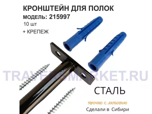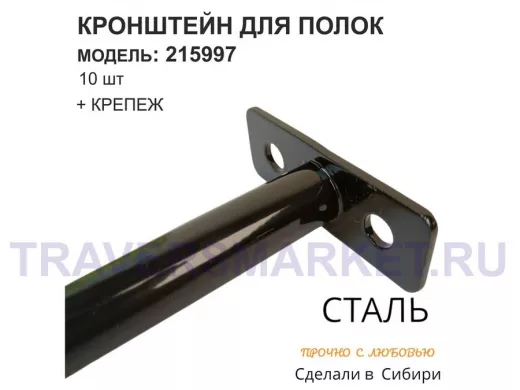 Заказать звонокКронштейн для скрытого крепления полок, 12х90мм, черный, в наборе 10шт "SVORKAMAX-215997" без полки