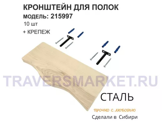 - Кронштейн предназначен для скрытого крепления полок, изготовленных из различных материалов: МДФ, ДСП, дерево, пластик.