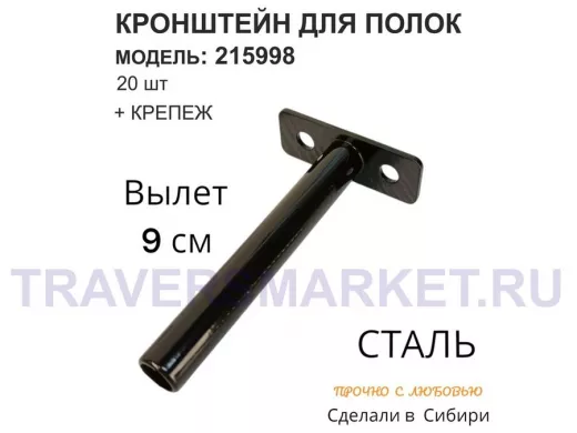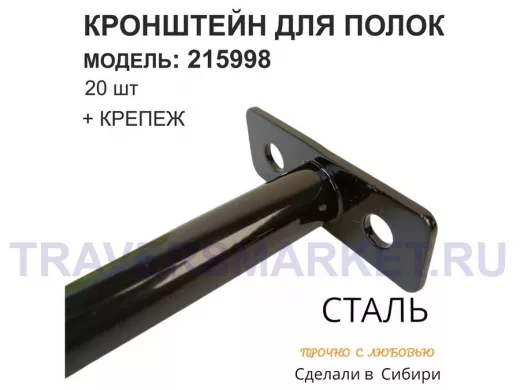 Заказать звонокКронштейн для скрытого крепления полок, 12х90мм, черный, в наборе 20шт "SVORKAMAX-215998" без полки
