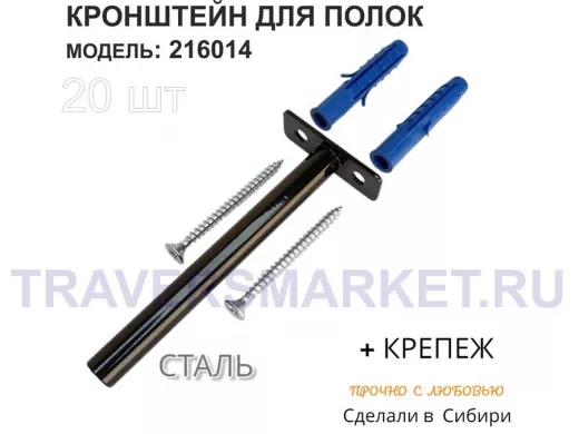 Кронштейн для скрытого крепления полок,12х120мм, черный, в наборе 20шт "SVORKAMAX-216014" без полки